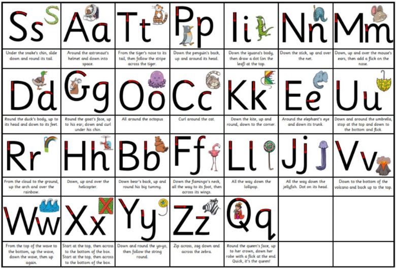 All staff in EYFS and Key Stage One are expected to always model correct print handwriting, ensuring pupils are consistently exposed to high-quality examples. Guidance is provided below and on the Little Wandle website to support the correct formation of lowercase letters, alongside simple phrases to help children remember the appropriate movements.